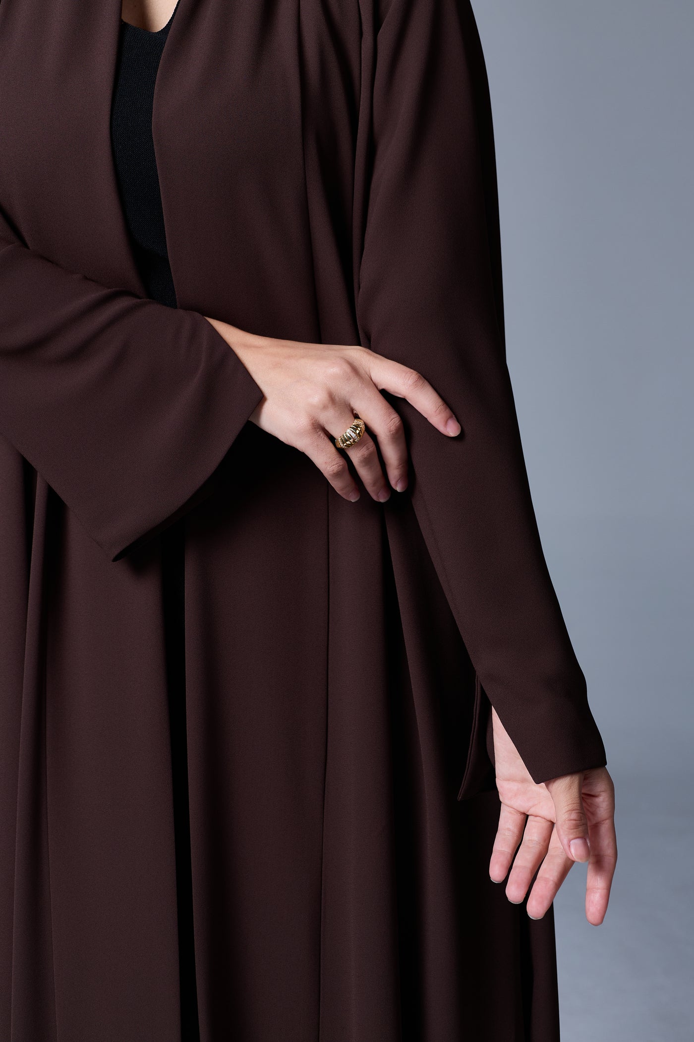 A LIGHTWEIGHT ABAYA DESIGNED FOR DAILY USE, EASY TO STYLE AND CARE FOR OFFERING A POLISHED LOOK ALL DAY LONG.